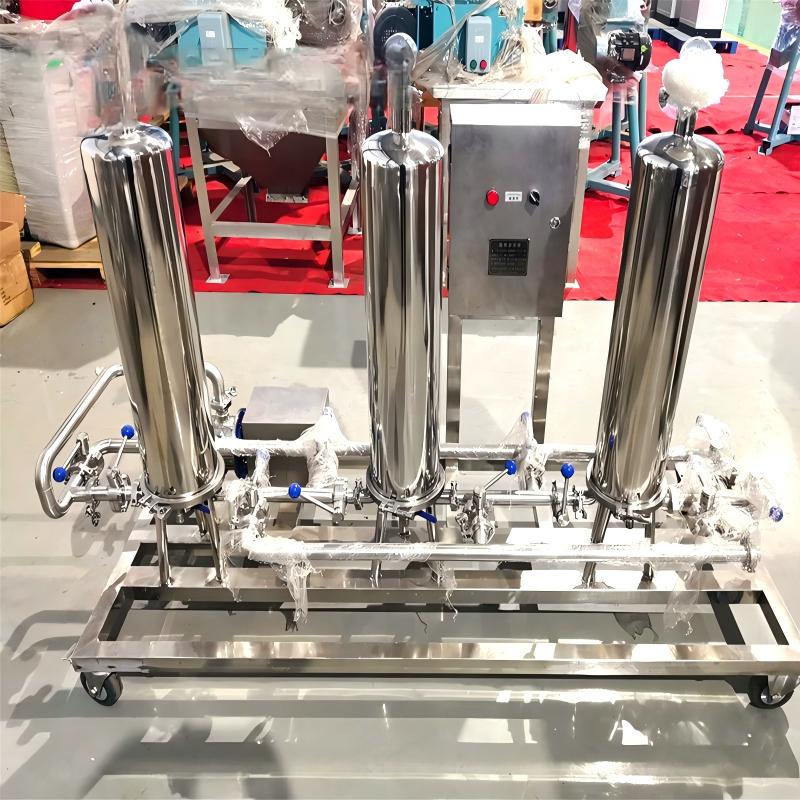 This machine is widely used for filtering water, beer, yellow wine, white liquor, fruit wine, gelatin, pharmaceuticals, juice, beverages, chemicals, and other similar liquids. It is typically installed downstream of the filtration unit and uses microporous capture bags to remove residual yeast, particles, fine diatomaceous earth, various complexes, and impurities from the liquid, ensuring that the product meets hygiene standards.