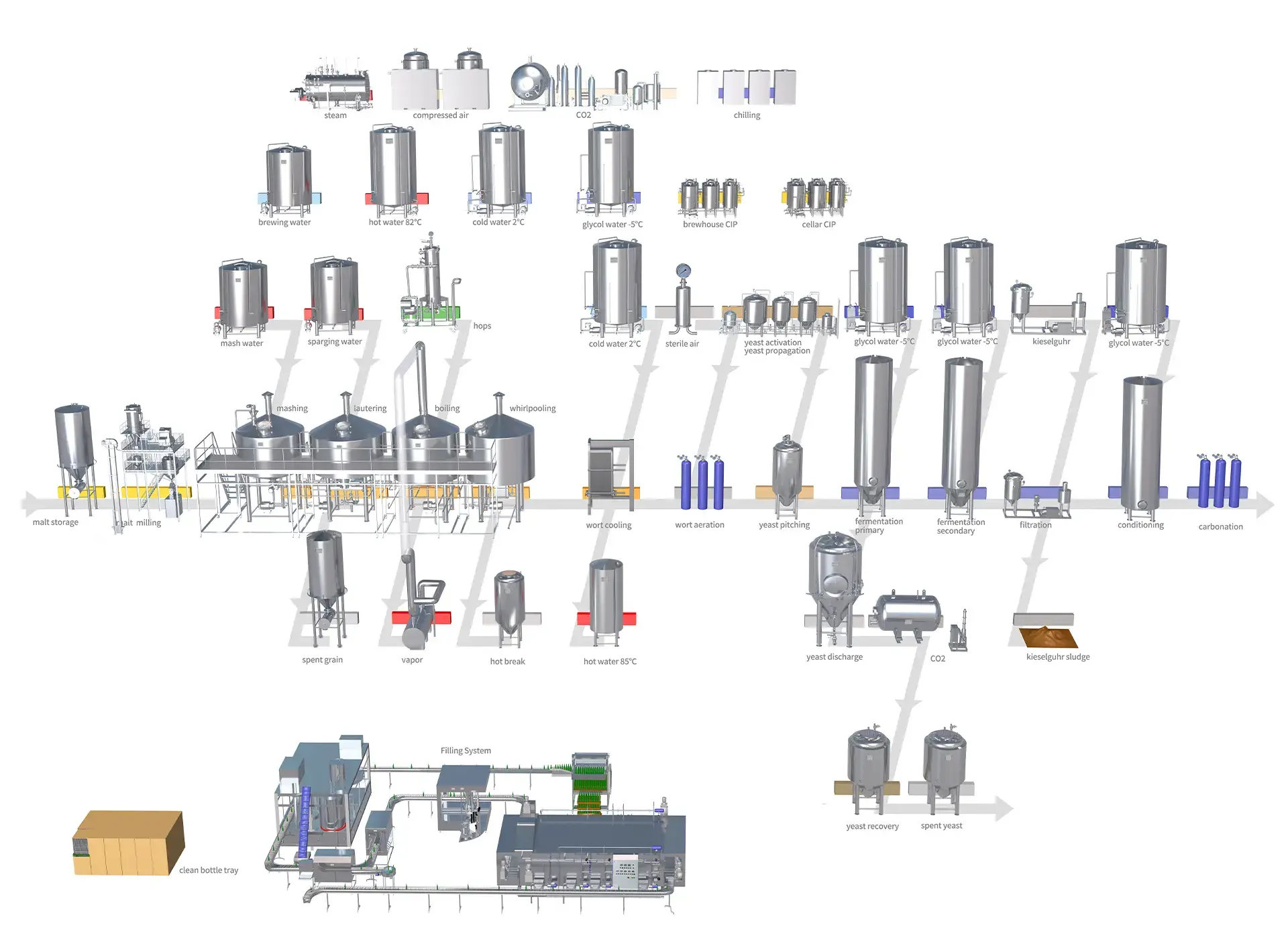 TIANTAI turnkey brewery plants offer innovative solutions and cutting-edge technology to help you achieve your brewing dreams. With Tiantai you can trust that your brewery project will be in expert hands from start to finish. As a general contractor, Tiantai supplies turnkey solutions for the entire brewery. We manufacture precisely matched brewery systems developed according to energy and economic aspects. With our decades-long experience in integrative systems construction, we have successfully completed a multitude of turnkey projects all around the globe.