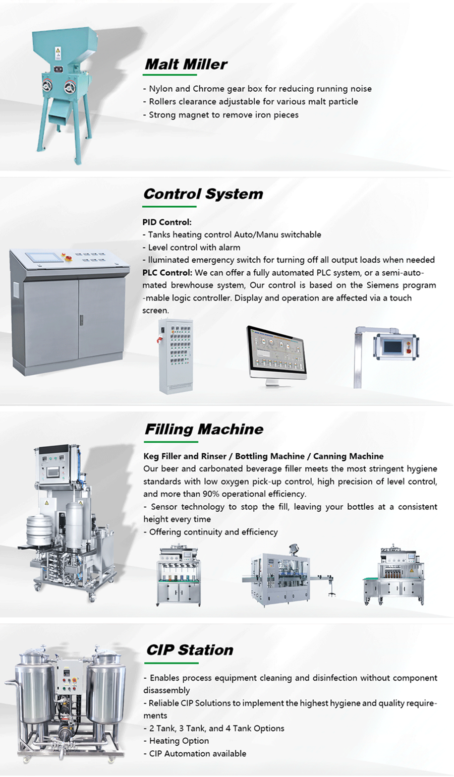 | 8 | CIP | Brewhouse CIP Cleaning System | 6m3 | Five tanks, automatic control |