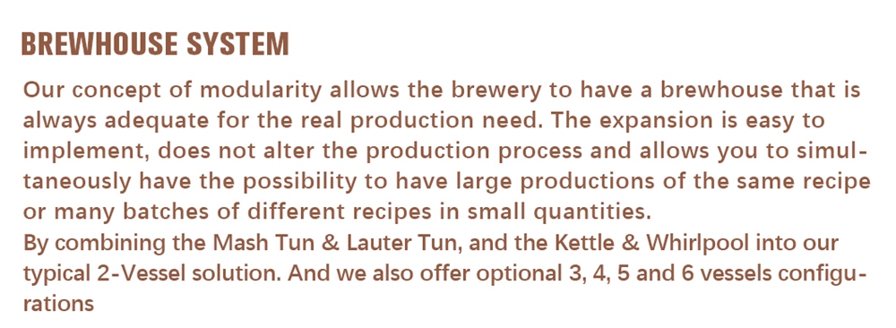 | 2 | Brewhouse Unit | Cooker Tun | 80HL | Cooking rice, Steam jacket on bottom and side Agitator inside |
