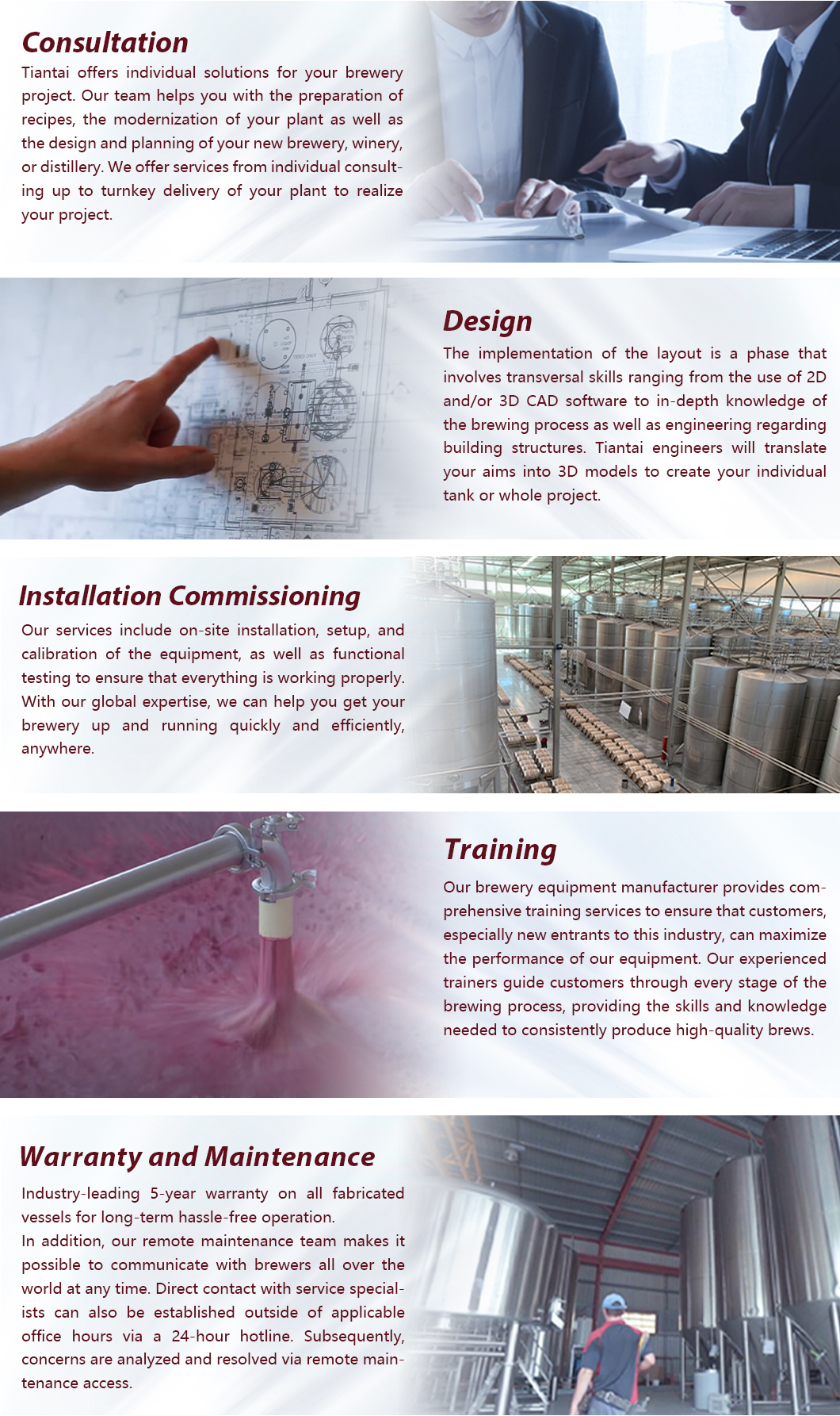 Whether you are planning a new winery or expanding an existing facility, TIANTAI team can provide professional technical support and reliable equipment.