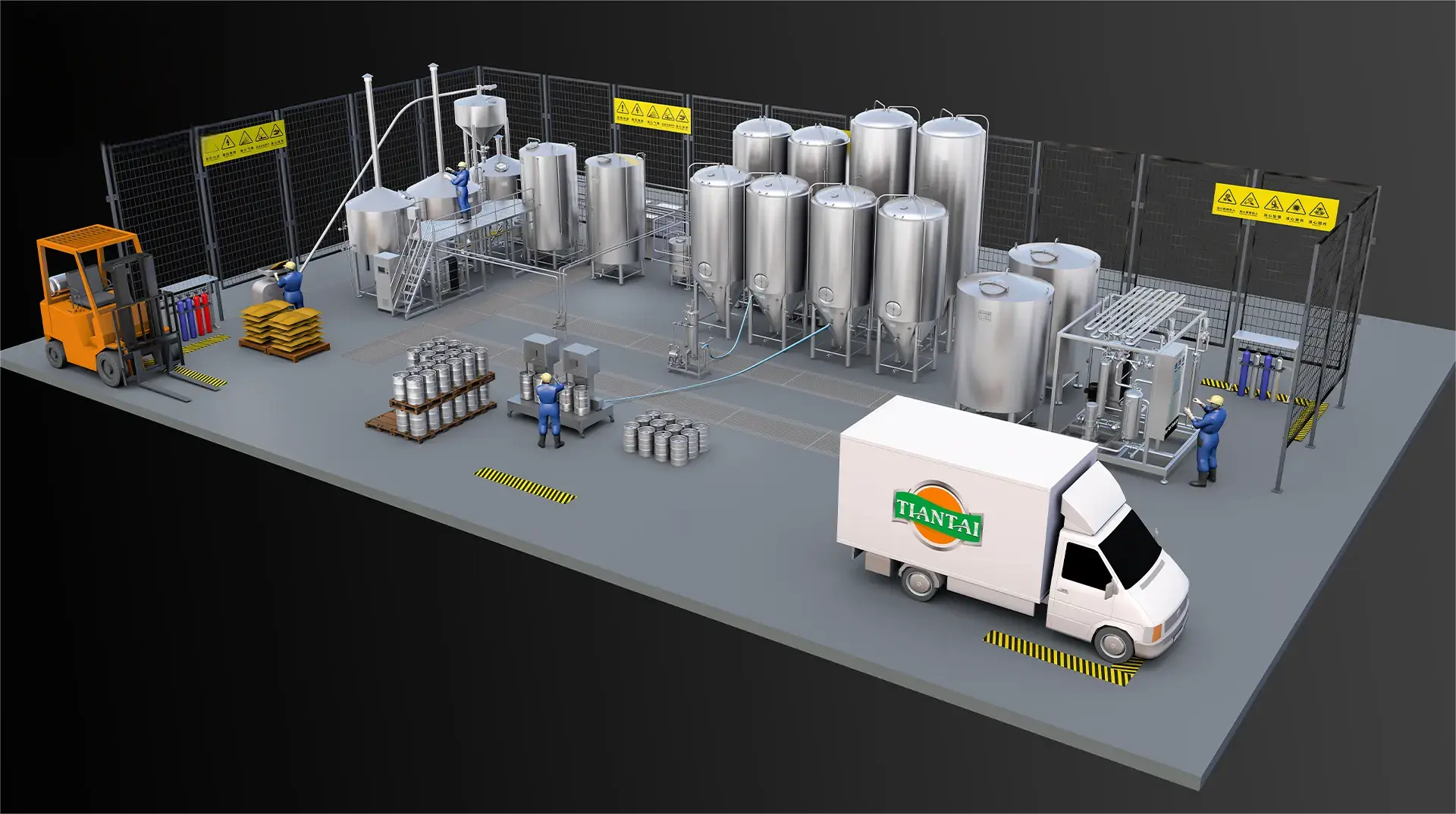 | Compelete Pipes & Fittings, Pumps | Pumps 10M3/H * 4sets, Non-slip Work Platform, Sanitary Piping, valves, Water Mixing Station, Wort Cooling Station Wort Aeration Station |